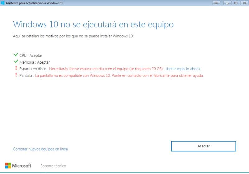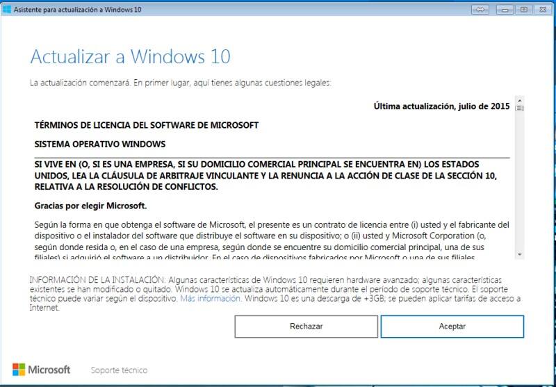 Hay otra forma, también. Hay que descargar el archivo ejecutable de actualización de Windows y luego asegurarse de estar conectado a internet y que hay espacio suficiente en el disco para la actualización. Tras ejecutar el lanzador, nos vamos a encontrar con esta pantalla.