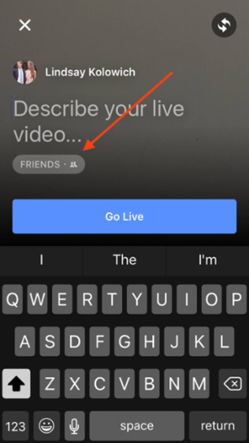 Ahora hay que elegir la privacidad de la transmisión, esto funciona de la misma manera que la privacidad para las publicaciones diarias que se hace normalmente. Si es la primera vez que se intenta hacer la transmisión, se puede escoger la opción de privacidad "solo yo" y hacer las pruebas pertinentes hasta sentirse cómodo con el funcionamiento.