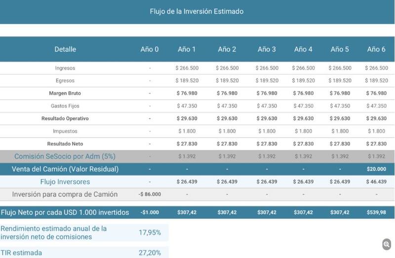 La renta de cada camión se recibe en la cuenta de SeSocio.com, que es quien auspicia el emprendimiento. Se puede efectivizar la inversión con tarjeta de crédito, PayPal o transferencia bancaria al igual que con criptomonedas. Desde SeSocio aclaran que "todo porcentaje sobre cuando rinde una inversión es estimada. Es un máximo deseado y toda inversión implica un riesgo que el inversionista debe estar consciente de correr".