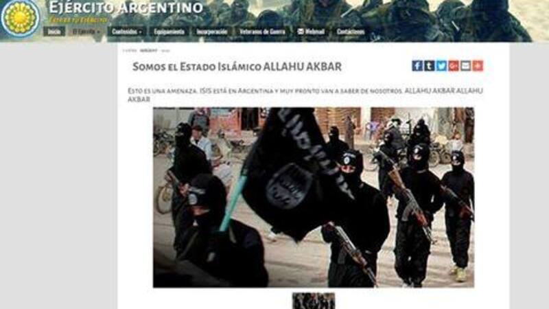 "Esto es una amenaza. ISIS está en Argentina y muy pronto van a saber de nosotros", reza el mensaje, junto a una foto de integrantes de esa agrupación terrorista. Las personas que bloquearon la página dicen pertenecer al "Estado Islámico Allahau Akbar".