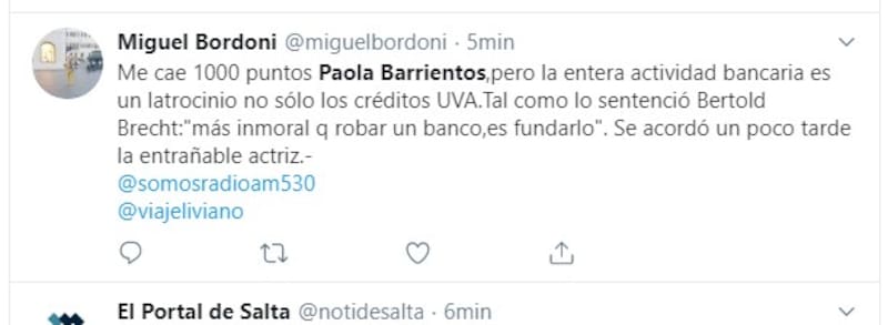 “Tiene que ver con la sensación que tenía, de que no podía hacerlo. No llegué al punto del guion, primero hablé con la gente porque fueron muchos años, había como una amistad con las chicas del banco, hemos viajado juntas a Punta del Este, y entonces hubo un momento en el que sentí que eso no lo podía hacer más , puntualizó Barrientos.