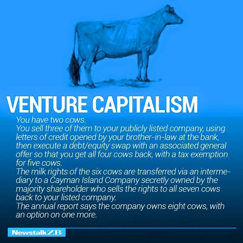 La leche de las seis vacas se transfieren, mediante un intermediario, a una compañía de las Islas Caimán, cuyos accionistas mayoritarios venden los derechos de esas siete vacas de vuelta a tu compañía.