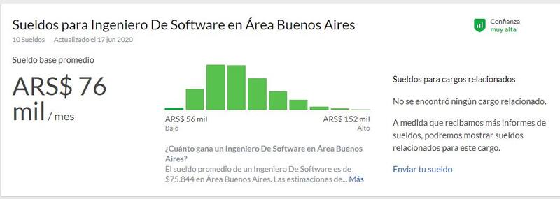 En el caso de los ingenieros de software el sueldo es similar. Según, nuevamente, datos de Glassdoor en promedio rondan los $ 70-80.000 aunque puede ser más según seniority.