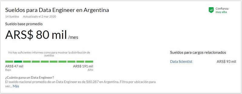 Puede verse otro ejemplo en el caso de analista de datos o data scientist. En este caso, los sueldos promedio son de $ 80.000.