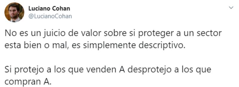 Cohan destacó que su explicación “no es un juicio de valor sobre si proteger a un sector está bien o mal, es simplemente descriptivo .