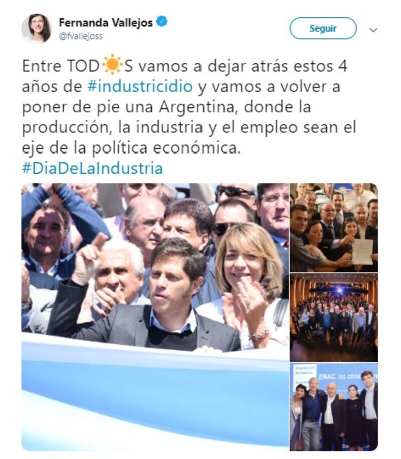 En esta ocasión, la diputada nacional por la Provincia de Buenos Aires por Unidad Ciudadana, Fernanda Vallejos, responsabilizó a la administración de Cambiemos por el “industricidio que padece economía argentina en un posteo en su cuenta personal de Twitter (@fvallejos).