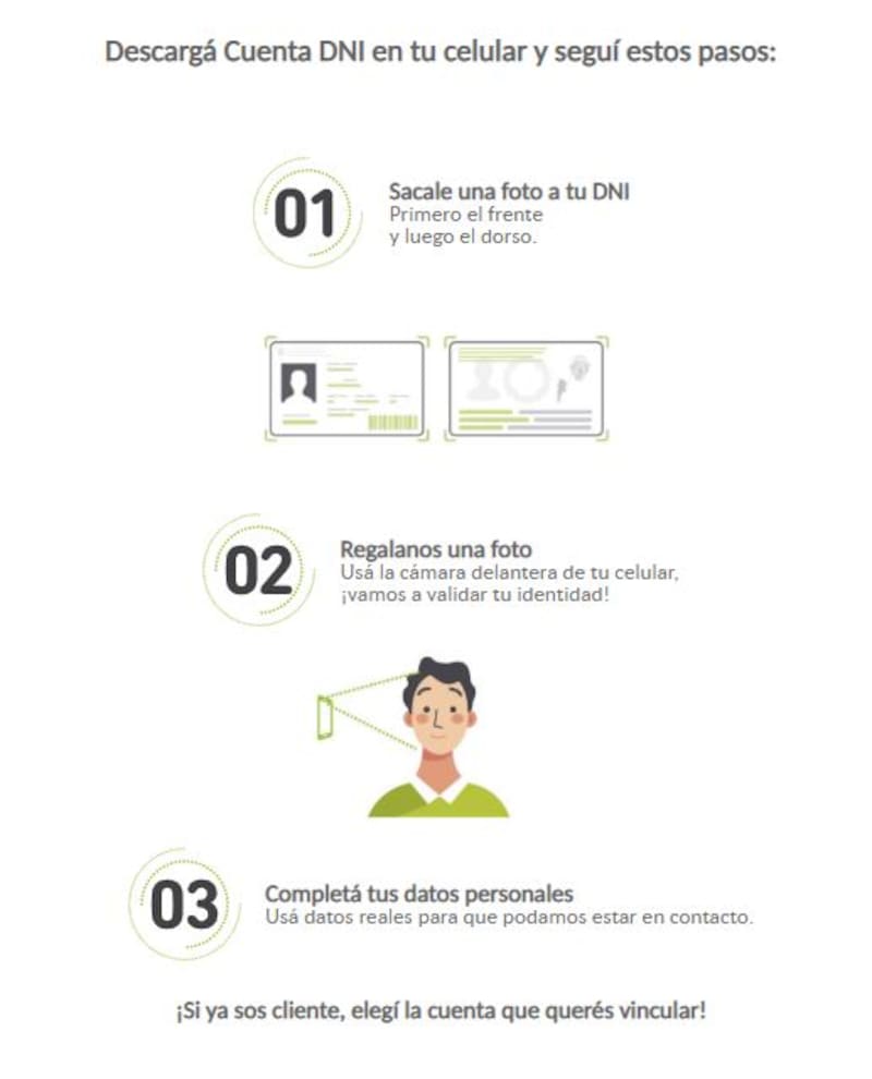 La app cuenta DNI es una aplicación muy segura. Desde el comienzo la identidad del cliente es validada por el Registro Nacional de las Personas (RENAPER) de manera online, mediante reconocimiento facial.
