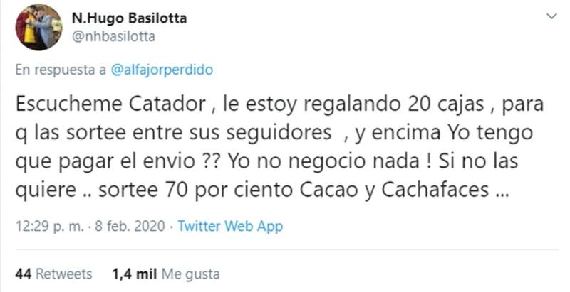 Basilotta se enojó por la respuesta del catador y lo defenestró: "Si no las quiere, sortee 70% cacao y cachafaces , dijo.