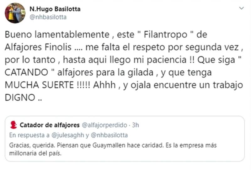 Uno de sus episodios más icónicos fue una dura pelea con una twittero conocido por ser "Catador de Alfajores" (@alfajorperdido). El catador le solicitó al dueño de Guaymallén 20 cajas de alfajores para sortear entre sus seguidores y se negó a pagar el envío de las cajas.