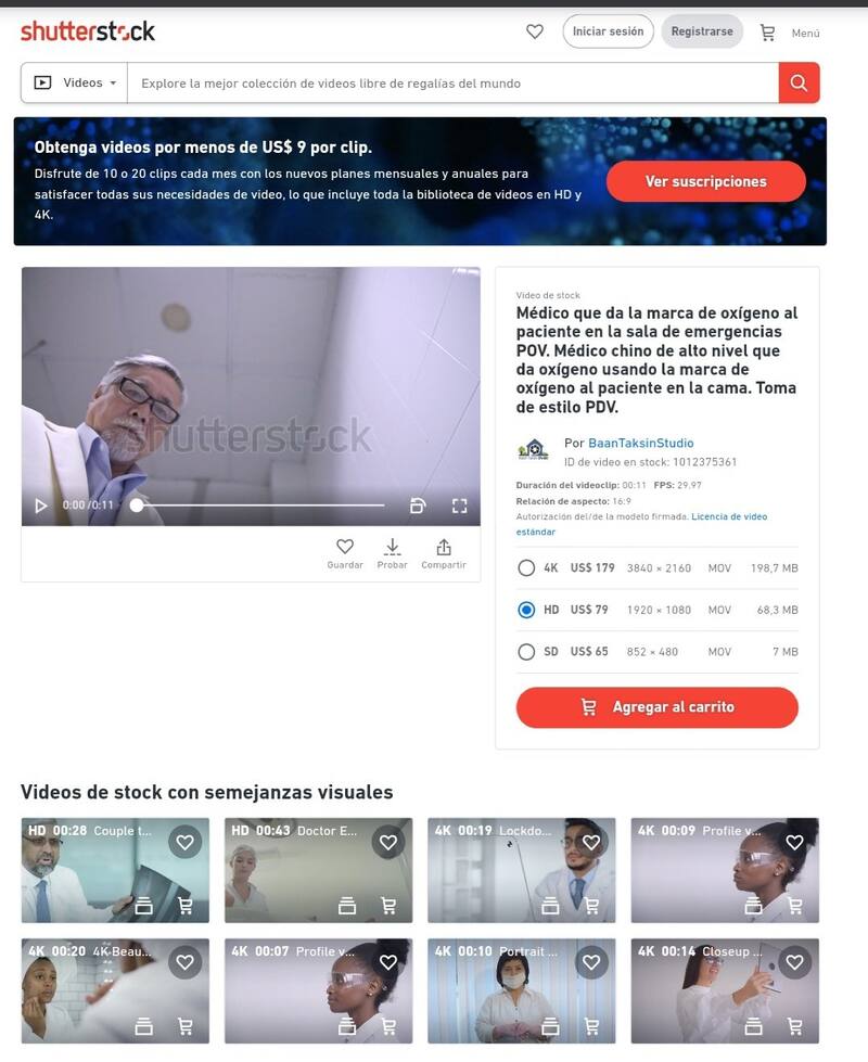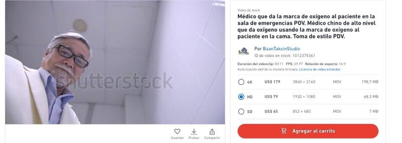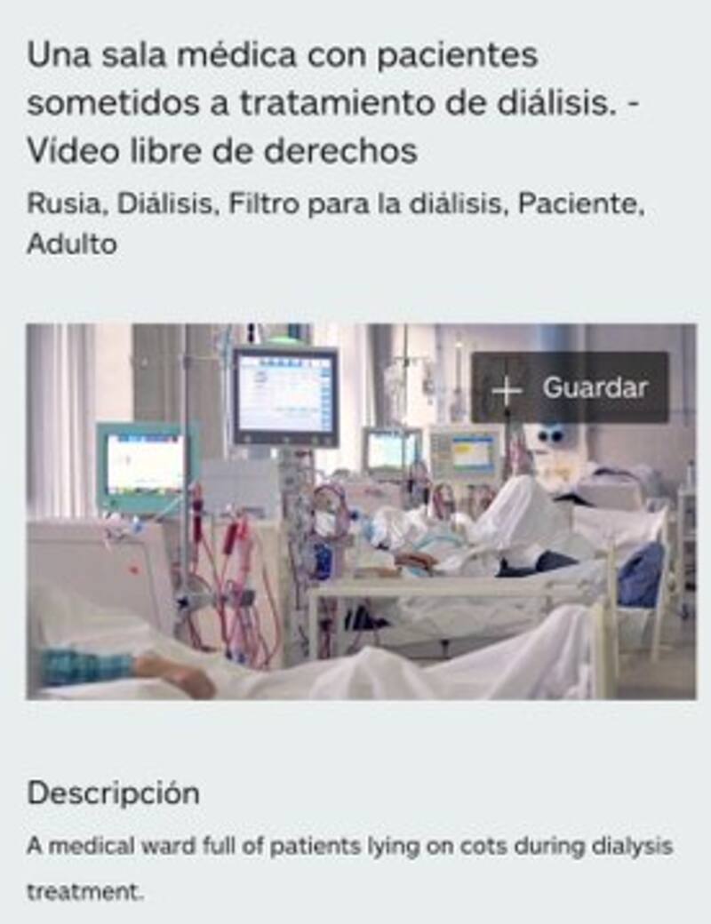 En este spot, cada clip valía US$ 9 y está grabado en una sala de emergencias con un médico tailandés que no utiliza barbijo. También compraron un video en iStock, otro repertorio de imágenes y videos, y lo publicaron como si fuese una sala de terapia intensiva cuando en realidad era un video libre de derechos filmado en Rusia de una sala de pacientes para diálisis.