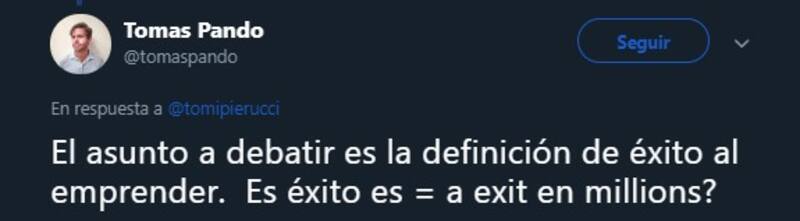 En tanto, Tomás Pando, de @mastermeup, estimó que en realidad se debería debatir la definición de “éxito al emprender . “Es éxito = a exit en millions .