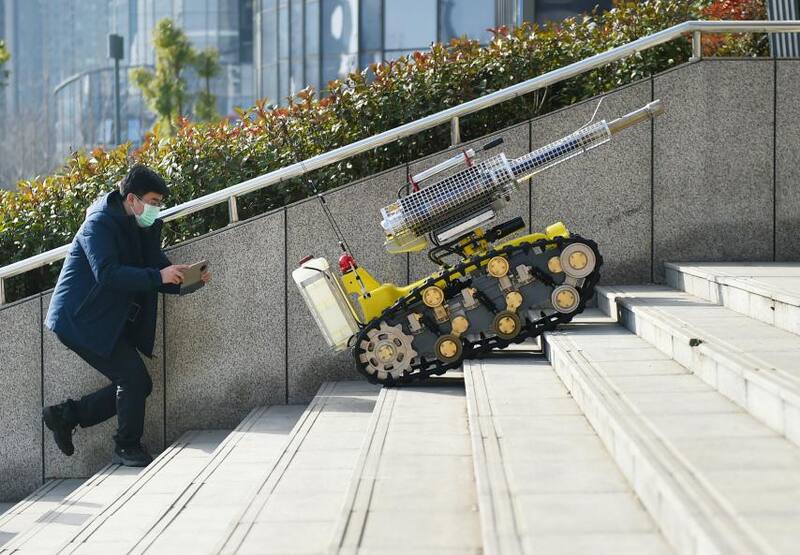 Durante la cuarentena total en China, el gobierno lanzórobots que limpien y desinfecten las calles: