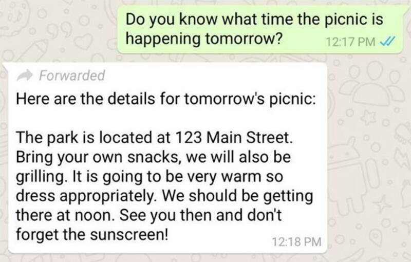 Cuando esta herramienta esté disponible para todos los usuarios, al reenviar un mensaje, sobre este aparecerá un letrero de "mensaje reenviado" en el chat original donde figuraba, por lo que los interlocutores de esa conversación podrán verlo claramente. Es importante mencionar que ni el autor de la cadena ni el que la ha reenviado verán ningún tipo de señal, solo quien recibe el mensaje reenviado.