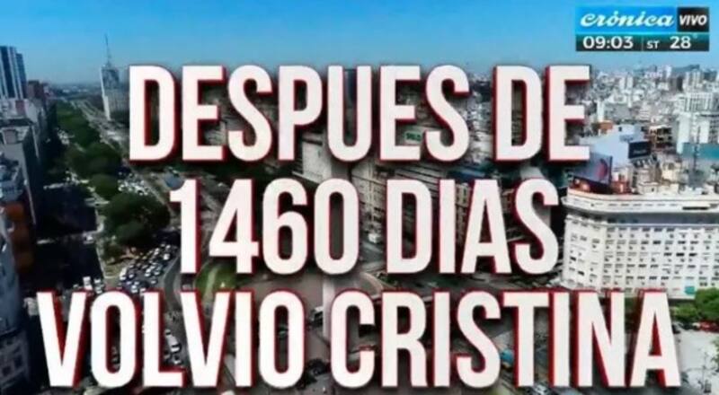 Asimismo, otra de las placas más festejadas fue la que sostenía: “Después de 1460 días volvió Cristina .