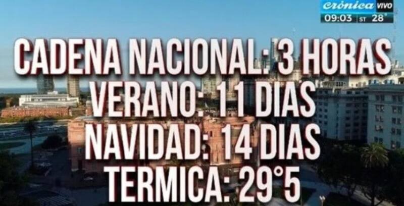 Incluso, los productores incluyeron la cuenta regresiva previa al comienzo de la Cadena Nacional, tal como suelen realizar previo al arranque de cada verano y la Navidad.