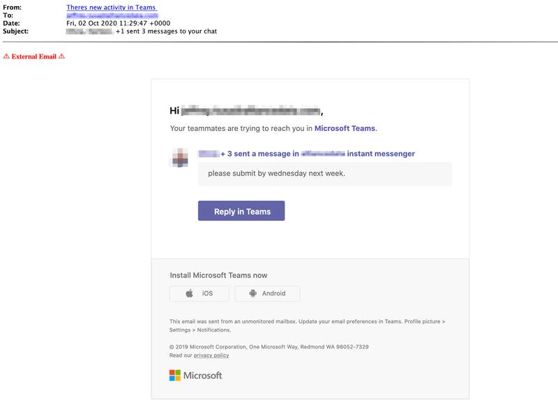 Recientemente se detectó que hasta 50,000 usuarios de Office 365 están siendo objetivo de una campaña de phishing que pretende notificarles, a través de correo electrónico, sobre un «chat perdido» en Microsoft Teams. Esta amenaza, disfrazada de un mensaje automatizado para aquellos usuarios que tienen una notificación no leída, en realidad tiene como objetivo robar las credenciales de inicio de sesión de los destinatarios. Desde que comenzó la pandemia, las estafas virtuales están al alza y se conocieron casos que incluso intentaban vulnerar las finanzas.