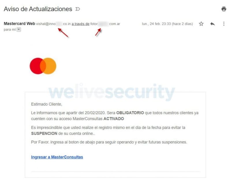 Se dio a conocer un nuevo caso de phishing que involucra a tarjetas Mastercard. Se trata de una modalidad de estafa cuyo fin es obtener datos de un usuario (claves, cuentas bancarias, números de tarjeta de crédito) a través de un engaño.