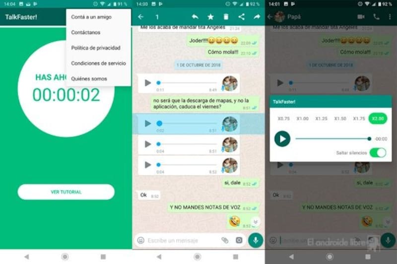 Para tener lo mejor de ambos mundos, un desarrollador israelí creo "TalkFaster!" (habla más rápido, en castellano) una app gratuita que permite acelerar y agilizar todo el proceso de escuchar un audio largo de WhatsApp.