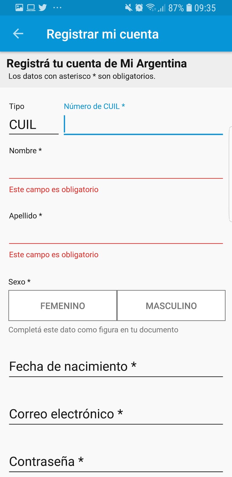 Para comenzar a operar con la app Mi argentina, el usuario deberá registrarse tras crear una cuenta personal.