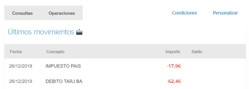 La operación se resume en el pago de un consumo en moneda extranjera en un sitio extranjero (como puede ser Amazon u otros). La liquidación se realiza con tarjeta de débito desde una cuenta en pesos argentinos del banco BBVA. Finalmente, la cuenta estaba configurada para que los consumos del exterior se debiten de la cuenta en pesos.