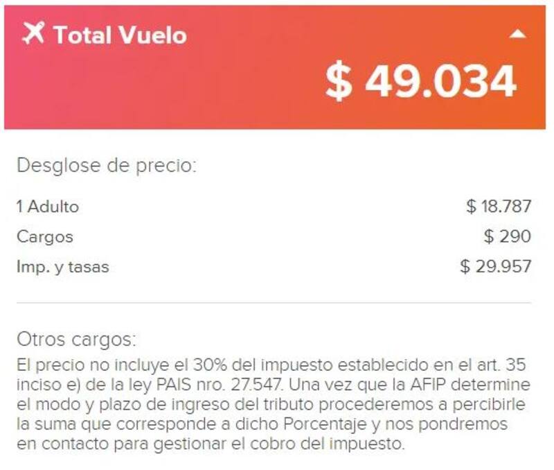 Al parecer si se compra en una agencia o aerolínea que facture desde Argentina y se pagá en pesos, no se debería pagar el 30%, al menos por ahora hasta que se reglamente lo contrario. "La tarjeta no te lo puede agregar en el resumen y van a tener que perseguirte para que se los pagues (lo que contamos al principio que LATAM le está diciendo a los agentes de viajes)", explicaron en el blog de viajeros.