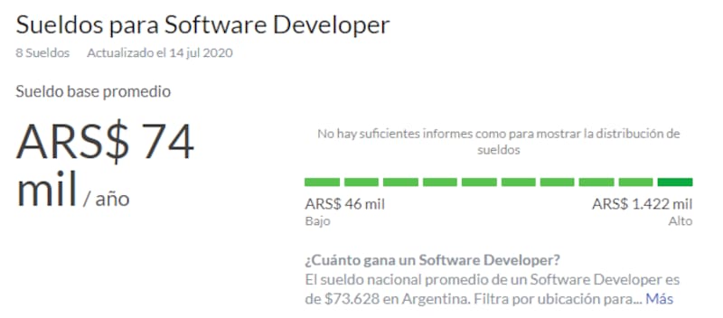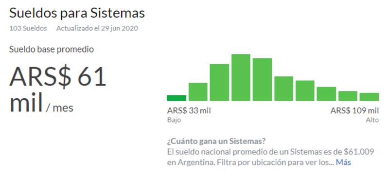Analista de Sistemas: el sueldo base ronda los $76 mil.