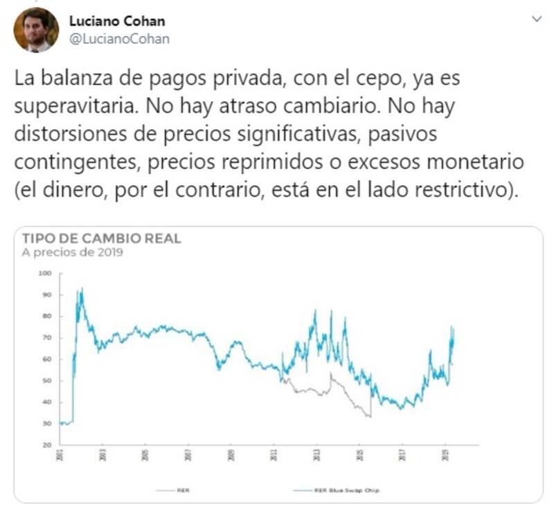 Remarcó que la balanza de pagos privada, con el cepo, ya es superavitaria. “No hay atraso cambiario. No hay distorsiones de precios significativas, pasivos contingentes, precios reprimidos o excesos monetario (el dinero, por el contrario, está en el lado restrictivo) , destacó.