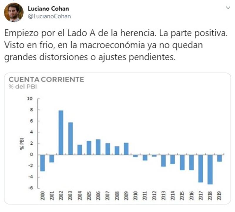 En su cuenta personal de Twitter, Luciano Cohan (@LucianoCohan), exsubsecretario de Programación Macroeconómica del Ministerio de Hacienda explicó cuál será la verdadera “herencia macroeconómica que recibirá Alberto.