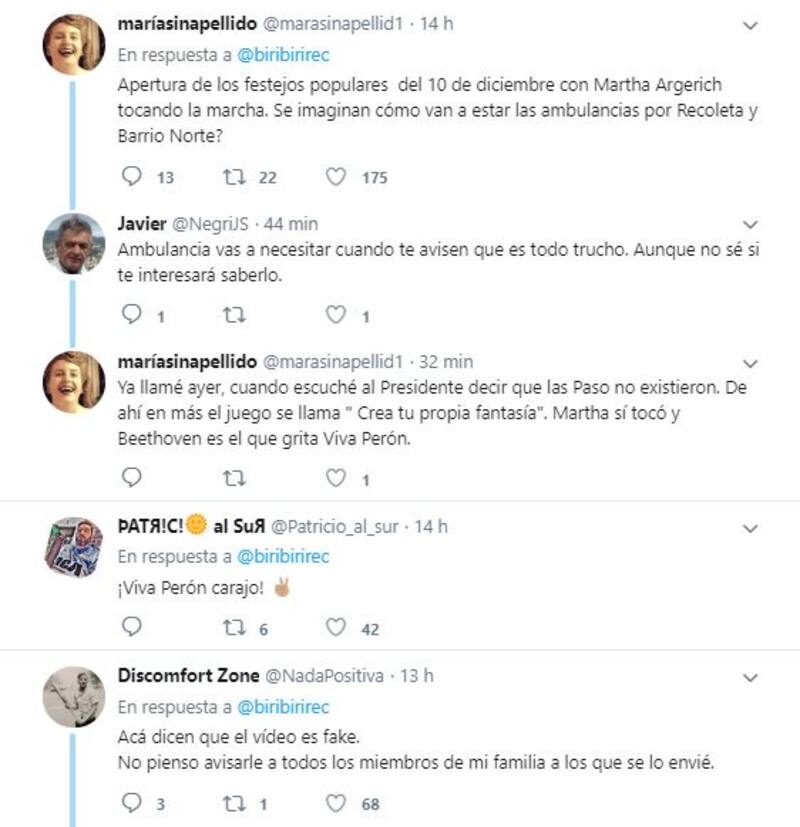 La reacción de los usuarios fue en algunos casos de escepticismo pero en muchos de credulidad. Aunque las respuestas más cómicos se dieron cuando estos últimos descrubrieron que el video era editado. Se trataba de una superposición de un audio de la marcha, efectivamente, tocándose en piano pero sobre un video diferente de Argerich tocando.