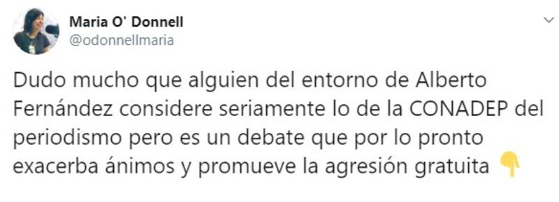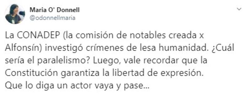 La periodista María O’Donell fue una de las voces que rápidamente salió a responderle a Marziotta. En su cuenta personal de Twitter, publicó: