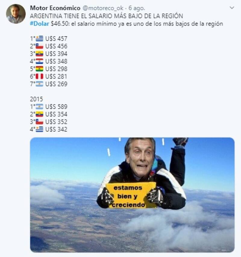 El poder de viralización que poseen las redes sociales cada día es más fuerte. Pese a la difícil jornada de ayer, cuando el peso argentino cayó con fuerza ante el dólar estadounidense, en buena medida por la incertidumbre que generó en el mercado el contundente resultado de las PASO, miles de argentinos volvieron a expresar su ingenio en las redes sociales.