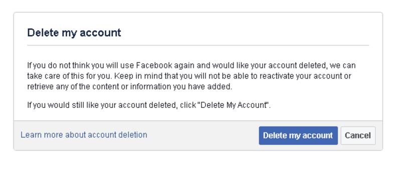 Luego de descargar todos los datos, solo queda borrar la cuenta, pero atención: una vez eliminados, los perfiles no pueden ser recuperados. Para hacerlo hay que ir a la página de borrado ingresando a este link -Facebook no tiene la opción disponible en su menú de configuración- y cliquear “Borrar mi cuenta . Esto hará que esta sea marcada para ser eliminada y que sea inaccesible para otros usuarios.