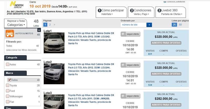 Para el día el jueves 10 de octubre, se espera una nueva subasta web. A través del sitio de NarvaezBIDsubastarán 48 rodados entre utilitarios y picks up, ubicados en la provincia de Santa Fe.