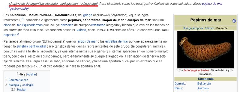 Fue tal la repercusión que llegó a la plataforma menos pensada, Wikipedia. La página en español de Holothuroidea, el nombre científico de los pepinos de mar, terminó siendo modificada y le agregaron una nueva especie, el pepino “Alexcannigiaris pijiforme que según detallaron, suele verse subido a yates y es el biotipo menos inteligente debido a su carencia de materia gris. Otro usuario también hizo que la búsqueda del término “pepino de mar argentino redireccione ahí.