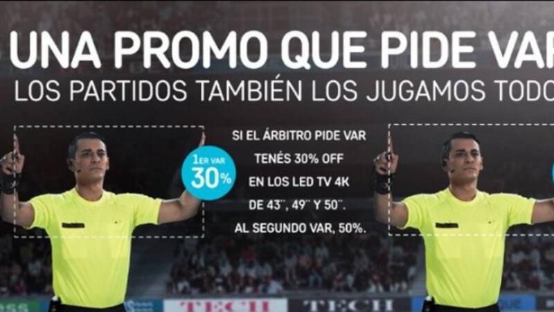 "Noblex continúa con su promo VAR con una ingeniosa consigna: asegura que en el partido disputado ayer el arbitró debió solicitar el VAR. Por tanto, la marca activa nuevamente la Promo con un descuento de 30% por 24 horas y 12 cuotas sin interés en todos el lineal de Leds TV", dijeron a través de un comunicado.