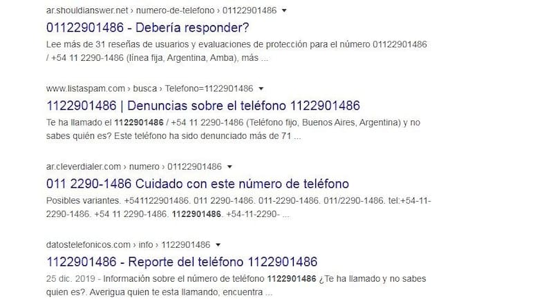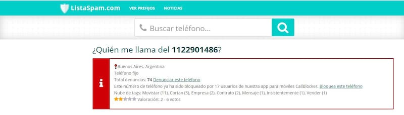 De la misma manera, varios sitios dedicados a recopilar información sobre spam telefónico (es decir, comunicaciones no solicitadas ni aprobadas por el usuario que las recibe) reconocen el número dentro de su lista. El número aparece en casi todos estos sitios: shouldianswer.net, listaspam.com, cleverdialer.com, datostelefonicos.com. telspy.org, entre otros.