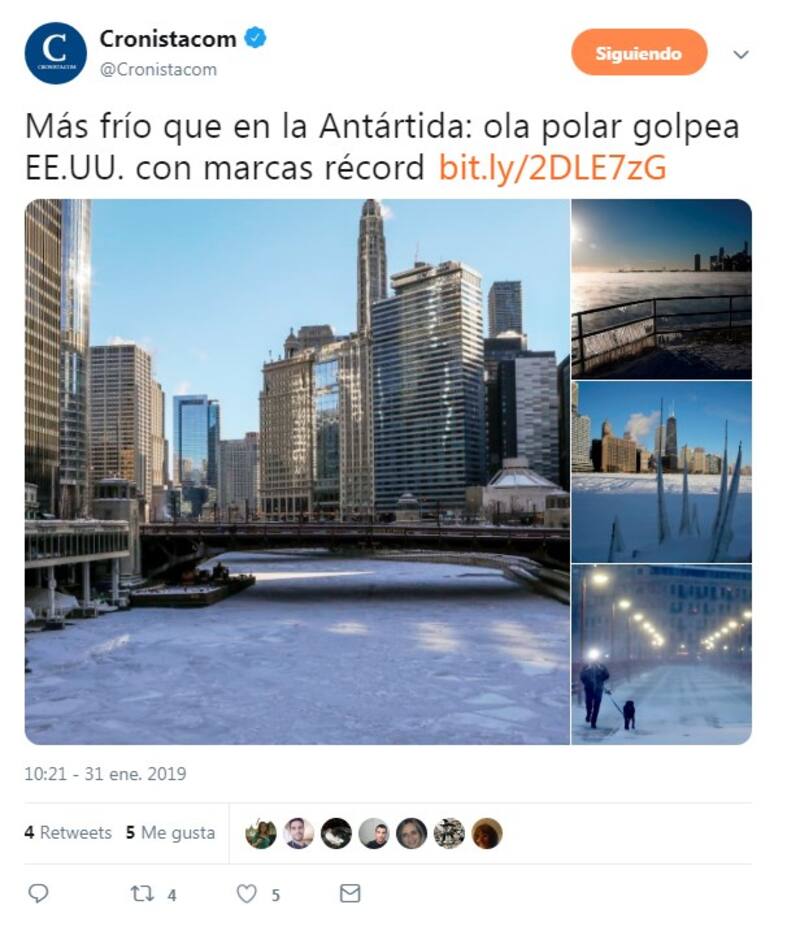 Si bien Chicago está acostumbrada a inviernos crudos, con un frío récord de -32 grados centígrados en 1985, este año el llamado Vortex Polar (vórtice polar) llega con una fuerza mayor después de 13 días consecutivos de nevadas.