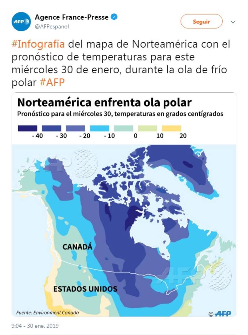 El medio oeste de Estados Unidos afronta días defrío extremo con temperaturas cerca de los 40 grados centígrados bajo cero, lo que ha llevado a las autoridades de ese país a declarar el estado de emergencia y la cancelación de cientos de vuelos.