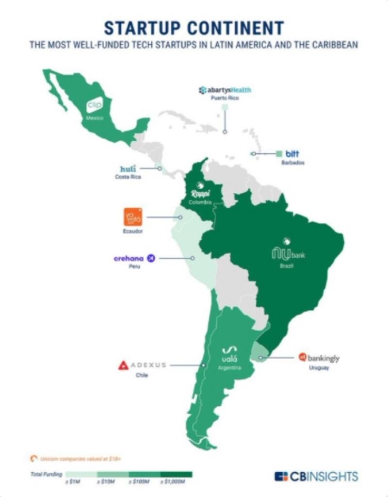 software que predice tendencias tecnológicas- elaboró un informe que muestra cuáles son las startups mejor financiadas de América latina y el Caribe.