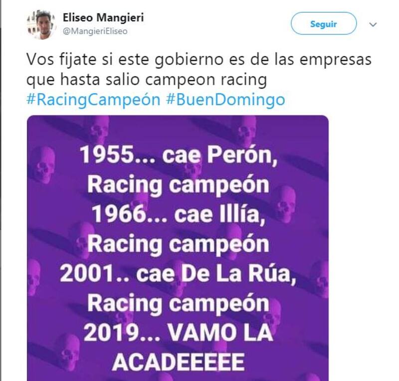 No fueron pocas las bromas de índole político respeccto a la victoria de Racing.