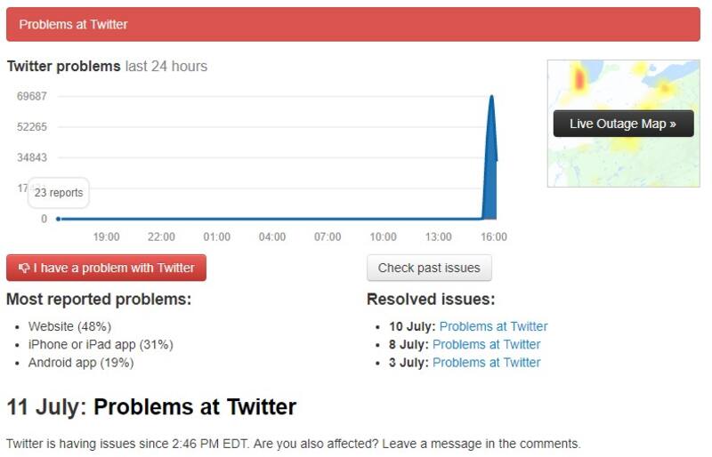 Según el sitio web DownDetector.com, "Twitter comenzó a experimentar problemas alrededor de las 2:46 p.m. ET el jueves".