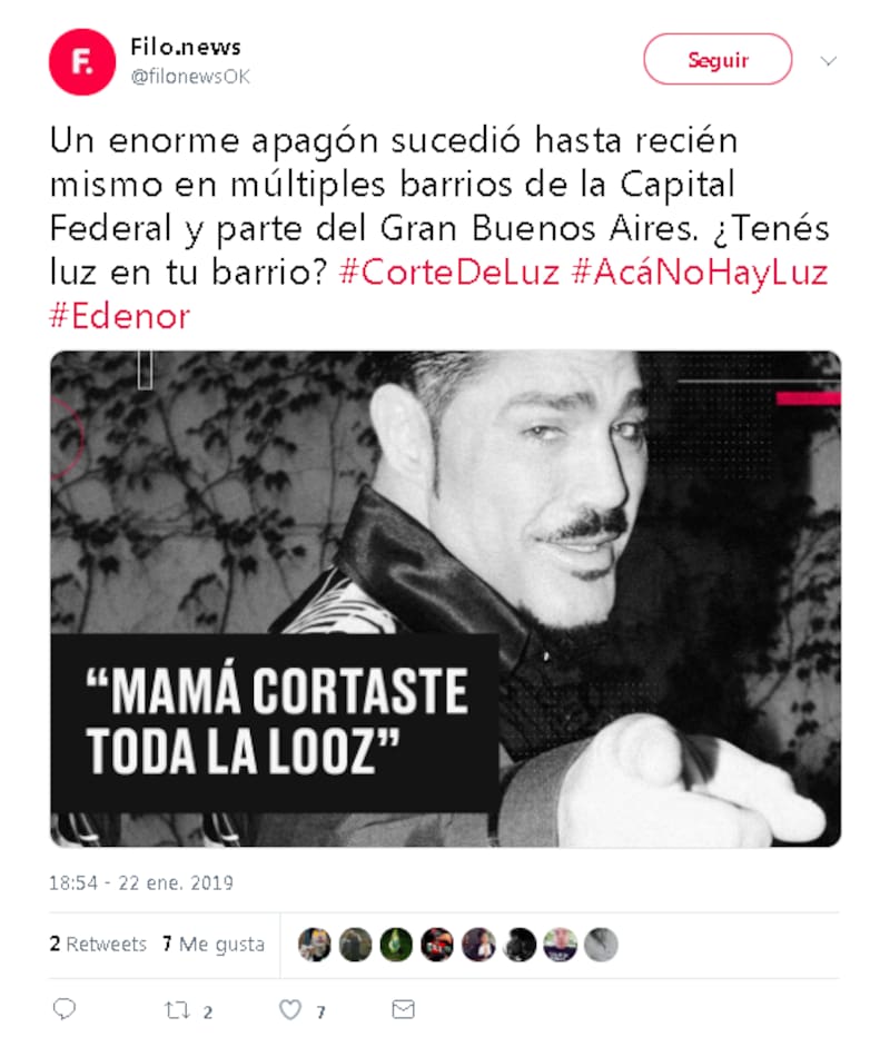 Se cortó la luz en gran parte de la Capital Federal y parte del Conurbano -que afecto a más de 200.000 usuarios- y las redes se llenaron de memes referidos a la cuestión. A continuación los mejores: