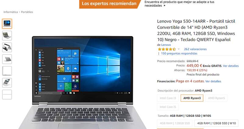 Lenovo se ha convertido en una alternativa cada vez más buscada para renovar los portátiles. Se trata de un equipo moderno, pero de entrada, con buenas prestaciones para el uso cotidiano. Cuenta con lector de huellas dactilares, compatibilidad con Active Pen, pantalla HD y sonido Dolby Audio. Tiene un arranque súper rápido, perfecto para encenderlo y ponerse a trabajar directamente. Se consigue de oferta por menos de 500 euros.