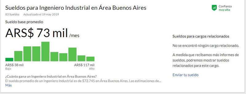 Sin embargo, hay ciertas especializaciones que se duplican o triplican ese promedio. Por ejemplo, los sueldos para Ingeniero Industrial en Área Buenos Aires suman en promedio $ 71.000 pero con una cola que puede alcanzar los $ 117.000