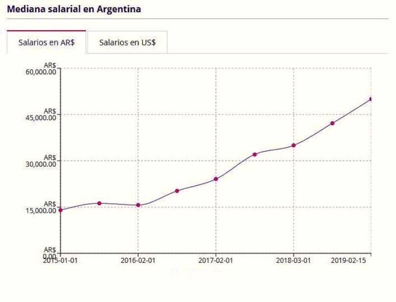 En Argentina, los sueldos de IT se posicionan en $ 50.000 dentro de la mediana estadística (la mediana representa el valor de la variable de posición central en un conjunto de datos ordenados).