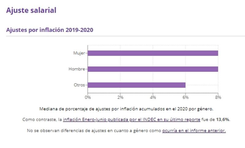 Según los datos relevados, a hombres y mujeres se les ajustó el salario por igual, en un 8%. Es decir, no existieron diferencias de género en esta ocasión, tal como se percibió en informes anteriores.