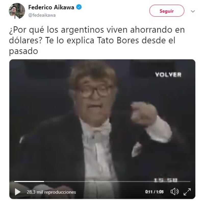 Durante el fin de semana se viralizó un segmento de un monólogo del comediante argentino Mauricio Borensztein, alias Tato Bores. Reconocido por su humor ácido, y siempre crítico de los gobiernos, muchos de sus monólogos "reviven" muchos años después porque siguen siendo de increíble actualidad. En este caso, se trata de un sketch sobre porque los argentinos siempre terminan recurriendo al dólar como reserva de valor.