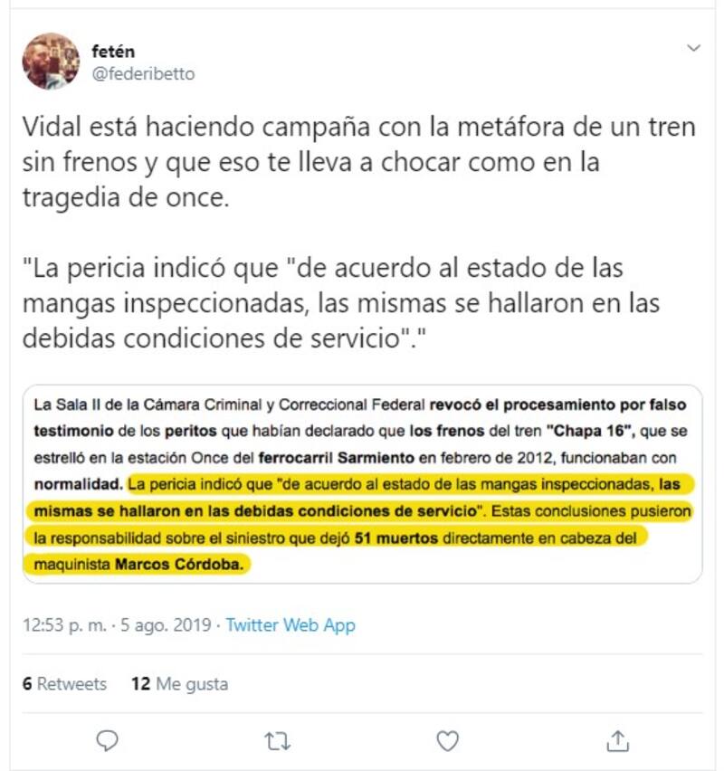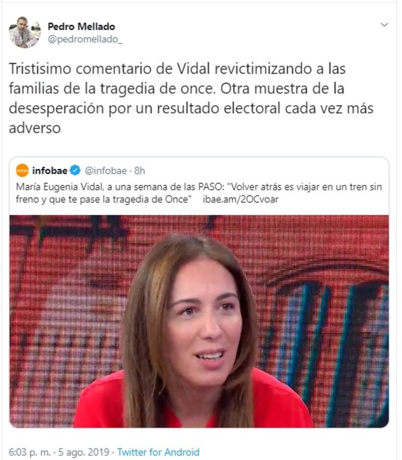 En las redes sociales una gran parte de las respuestas fueron en contra de las expresiones de Vidal, e incluso el grupo de familiares de la Tragedia de Once indicó su rechazo.