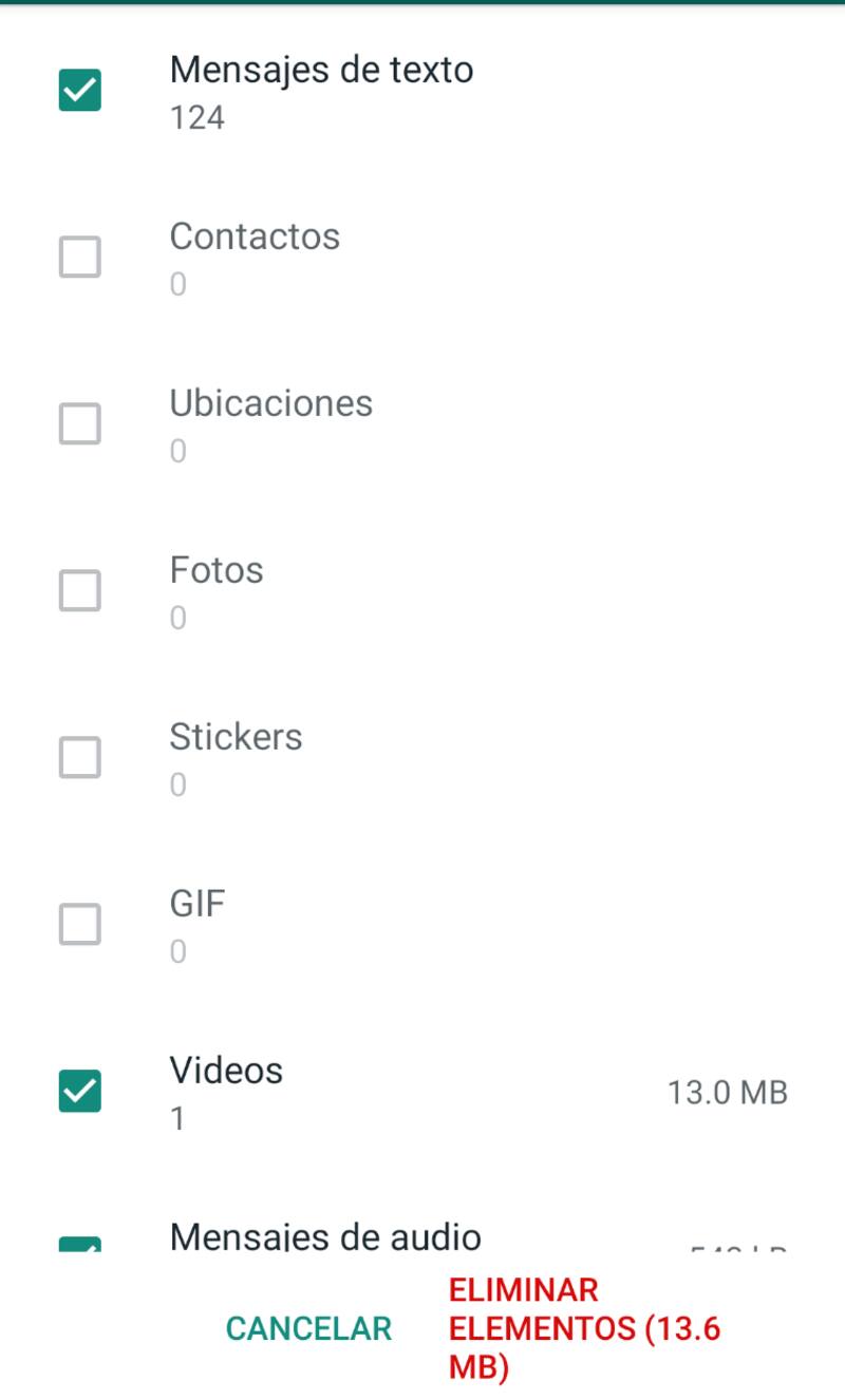 Una vez que se presione sobre el contacto deseado, debajo del listado de detalle de interacción, la aplicación brinda la posibilidad de liberar espacio si se desea.