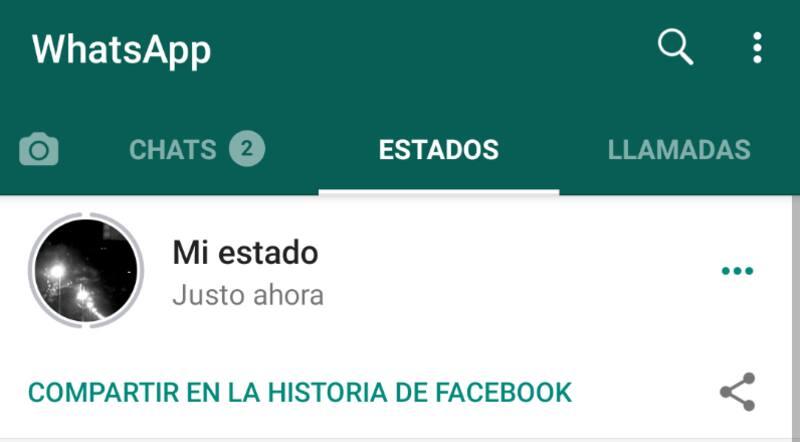 El funcionamiento de la nueva herramienta es simple. El usuario debe ir a la sección 'Mi Estado' de WhatsApp y pulsar el botón ‘Compartir en la historia de Facebook’ o, sino, elegir el símbolo de 'Compartir', si en realidad pretende compartirlo en otra plataforma o red social.